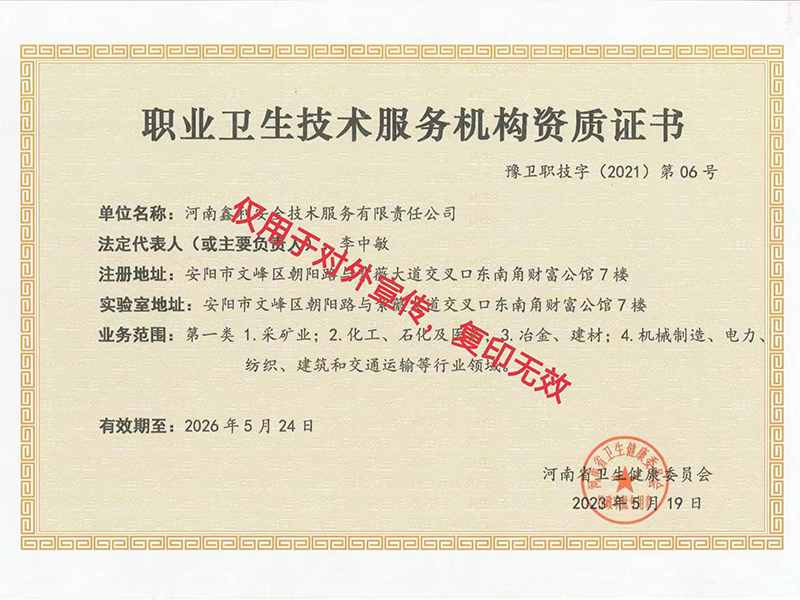 職業(yè)衛(wèi)生技術(shù)服務(wù)機構(gòu)資質(zhì)證書