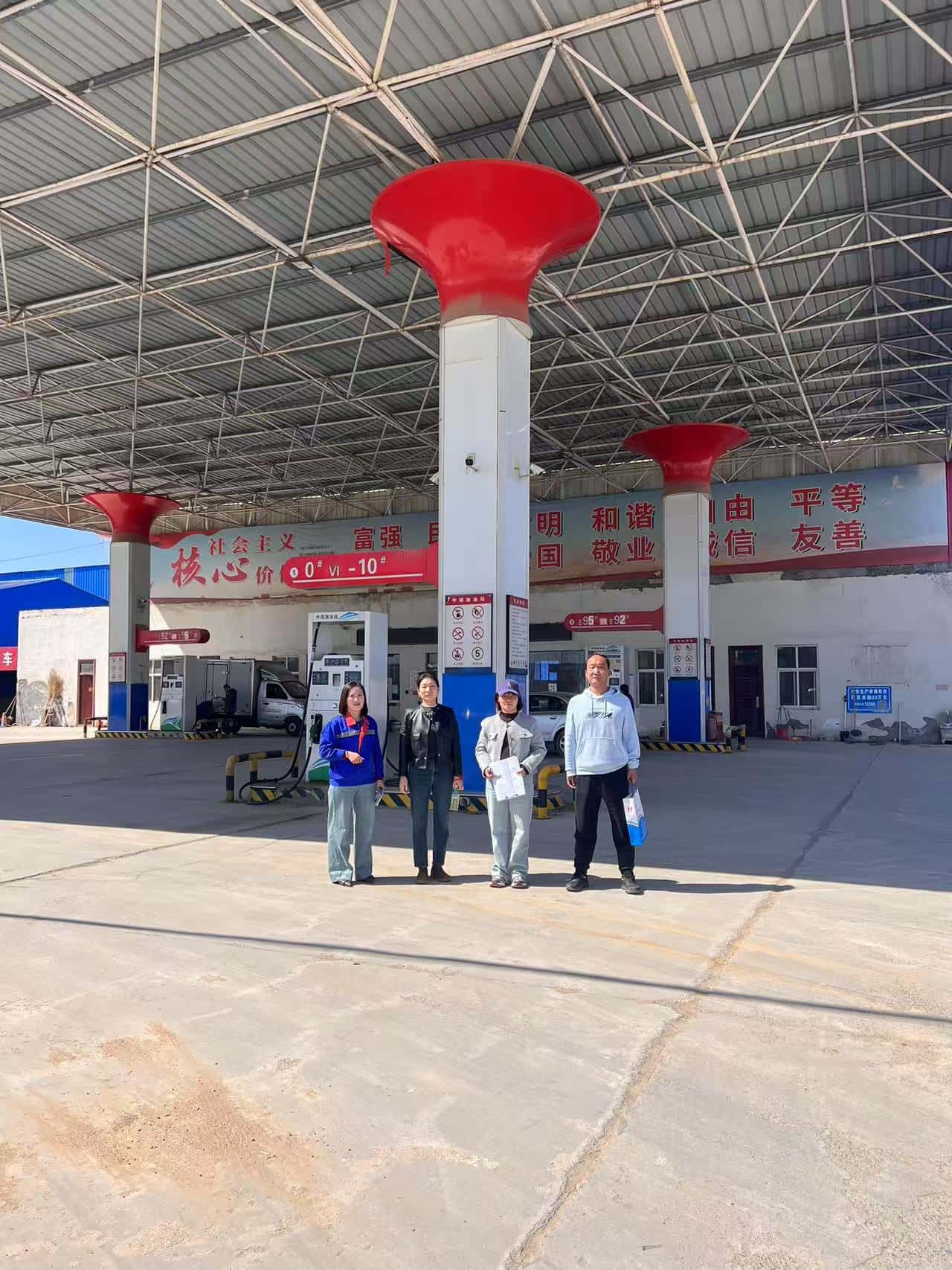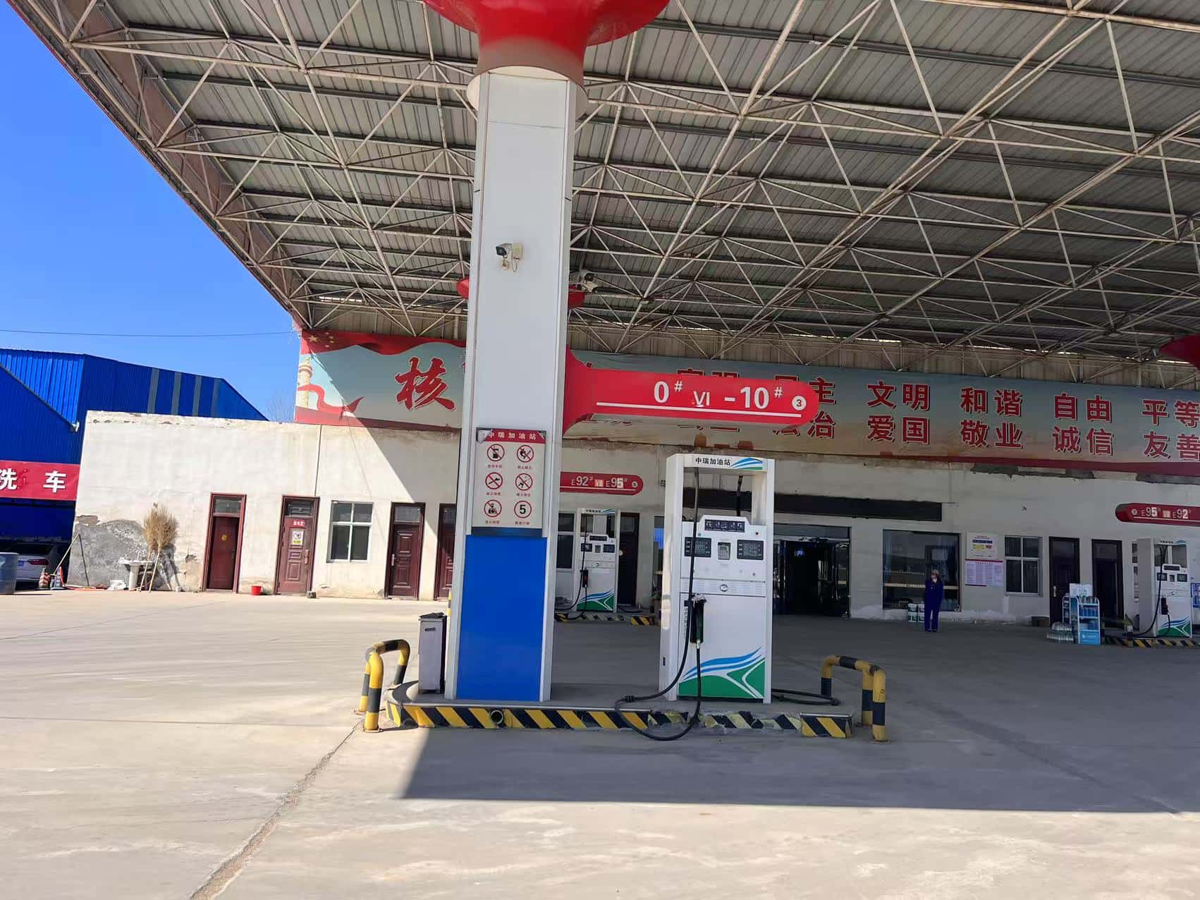 項目簡介 | 滑縣中瑞加油站成立于2019年09月10日,位于河南省安陽市滑縣老店鎮北兩公里X008縣道西側,主要負責人:郭本然,統一社會信用代碼:91410526MA47CM1G34,類型:個人獨資企業。《成品油零售經營批準證書》,經營范圍為:汽油、煤油、柴油;有效期:2025年03月07日至2030年03月06日。《危險化學品經營許可證》許可經營范圍:乙醇汽油、柴油,有效期:2022年8月29日-2025年8月28日。 該站坐西朝東,該站站外東側為X008縣道,西側為混凝土料廠,南側為罐車廠房及瓷磚門市,北側為民房。自2022年8月取證以來,周邊環境未發生變化。站內總平面布置變化如下;為提升加油站輔助服務,2023年6月在加油站站房南側增加洗車棚一座;與站內加油設施的防火間距符合GB 50156-2021《汽車加油加氣加氫站技術標準》表5.0.13-2的要求,提供有變更后圖紙。為方便加油員工為客戶加油、開票服務,2024年9月在汽油加油機附近增設可燃氣體報警儀。站內其他建、構筑物未發生變化。 | |||